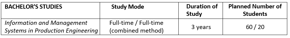 A first‑degree graduate of the study program Information and Management Systems in Production Engineering is prepared to analyze and solve problems in production processes, especially in mechanical, food, and agricultural production. They possess multidisciplinary knowledge in the areas of materials, design, electrical engineering, automation, robotics, and informatics.