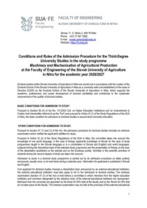 Podmienky a pravidla PK PhD ENG Machinery and Mechanisation of AP 26_27 | Poď na zelenú!