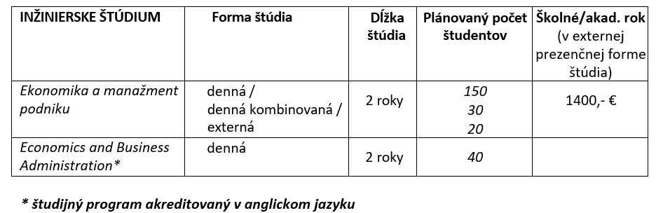 Absolvent inžinierskeho študijného programu Ekonomika a manažment podniku je pripravený zastávať náročné odborné a riadiace pozície v podnikovej praxi. Disponuje komplexnými znalosťami z ekonomiky, finančného, strategického a projektového manažmentu, controllingu, riadenia kvality a analýzy dát. Dokáže analyzovať komplexné ekonomické situácie, prijímať rozhodnutia založené na dátach a implementovať efektívne stratégie. Vďaka rozvinutým analytickým, manažérskym a komunikačným zručnostiam je schopný viesť tímy, riadiť podnikové procesy a podporovať udržateľný rozvoj organizácií v dynamickom domácom aj medzinárodnom prostredí.