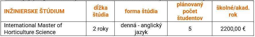 Inžiniersky študijný program International Master of Horticulture Science (IMHS) je akreditovaným spoločným študijným programom, realizovaným Fakultou záhradníctva a krajinného inžinierstva SPU v Nitre, Fakultou biotechnológií a záhradníctva Poľnohospodárskej univerzity v Krakove (Poľsko) a Záhradníckou fakultou Mendelovej univerzity v Brne (Česká republika). Absolventovi sa udelí akademický titul Master of Science (v skratke MSc.). Doklady o ukončení štúdia (diplom a dodatok k diplomu) mu vystavia všetky tri spolupracujúce univerzity. Absolvent získa komplexné znalosti záhradníckej výroby. Ovláda nové technológie pestovania v zeleninárstve, kvetinárstve, ovocinárstve a vinohradníctve vrátane integrovaných a ekologických systémov produkcie ovocia, zeleniny, hrozna a vína s dôrazom na kvalitu produkcie surovinových zdrojov a následného pozberového spracovania a skladovania. Ovláda proces spracovania hrozna a výroby vína s dôrazom na prívlastkové vína vysokej kvality. Je schopný samostatne riešiť problémy v oblasti výskumu v nadväznosti na požiadavky inštitúcie. Vie manažovať výrobný a odbytový proces, vstupovať do spoločných projektov na úrovni požiadaviek EÚ. Riadi výrobný a marketingový proces na vysokej profesionálnej úrovni.